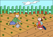 garden or plots, tasks for the care of the plants and little animals,