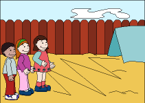 the outside area that the children must cross to arrive at everybody’s