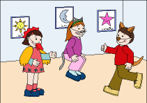 Resources: A tableau, a teddy bear to manipulate, cassette