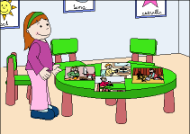 education materials: temperas, brushes, color pencils, sheets of paper,
