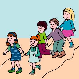 The teacher puts up several strings on the ground of an open place, as if they were paths. The teacher will mark different rhythms and the children will walk along the paths according to them, watching their steps in order not to step out of them. The children will walk through the paths several times; from the second one on, they will imitate the way in which some animals walk, while going along them (cat, kangaroo, rabbit, snake, etc). |