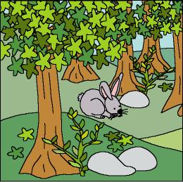 The teacher will ask as many questions as possible. Then, he/she will finish the conversation by telling the children that it's true that sometimes it's necessary to cut down some trees; but in those cases new trees have to be planted to substitute the other ones. In this way everything will be less harmful for the animals that live in those habitats. The teacher will ask the children to plant new trees in the illustration in which the trees have been devastated. The children will draw and colour different plants and trees on that illustration. |